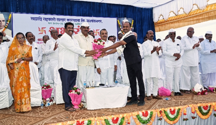 कराड : आपला जीव धोक्यात घालून कृष्णा नदी पात्रामध्ये बुडणाऱ्या मुलीचा जीव वाचवणाऱ्या पोलीस कर्मचारी संताजी तानाजी माने, रा.भोसे, ता.कोरेगाव यांचा सह्याद्री कारखान्याच्या गळीत हंगाम शुभारंभप्रसंगी सर्व सभासदांच्यावतीने माजी सहकार व पणन मंत्री, कारखान्याचे चेअरमन बाळासाहेब पाटील यांच्या प्रमुख उपस्थितीत आणि राष्ट्रवादी काँग्रेसचे जिल्हाध्यक्ष सुनील माने यांच्या शुभहस्ते सत्कार करण्यात आला.
